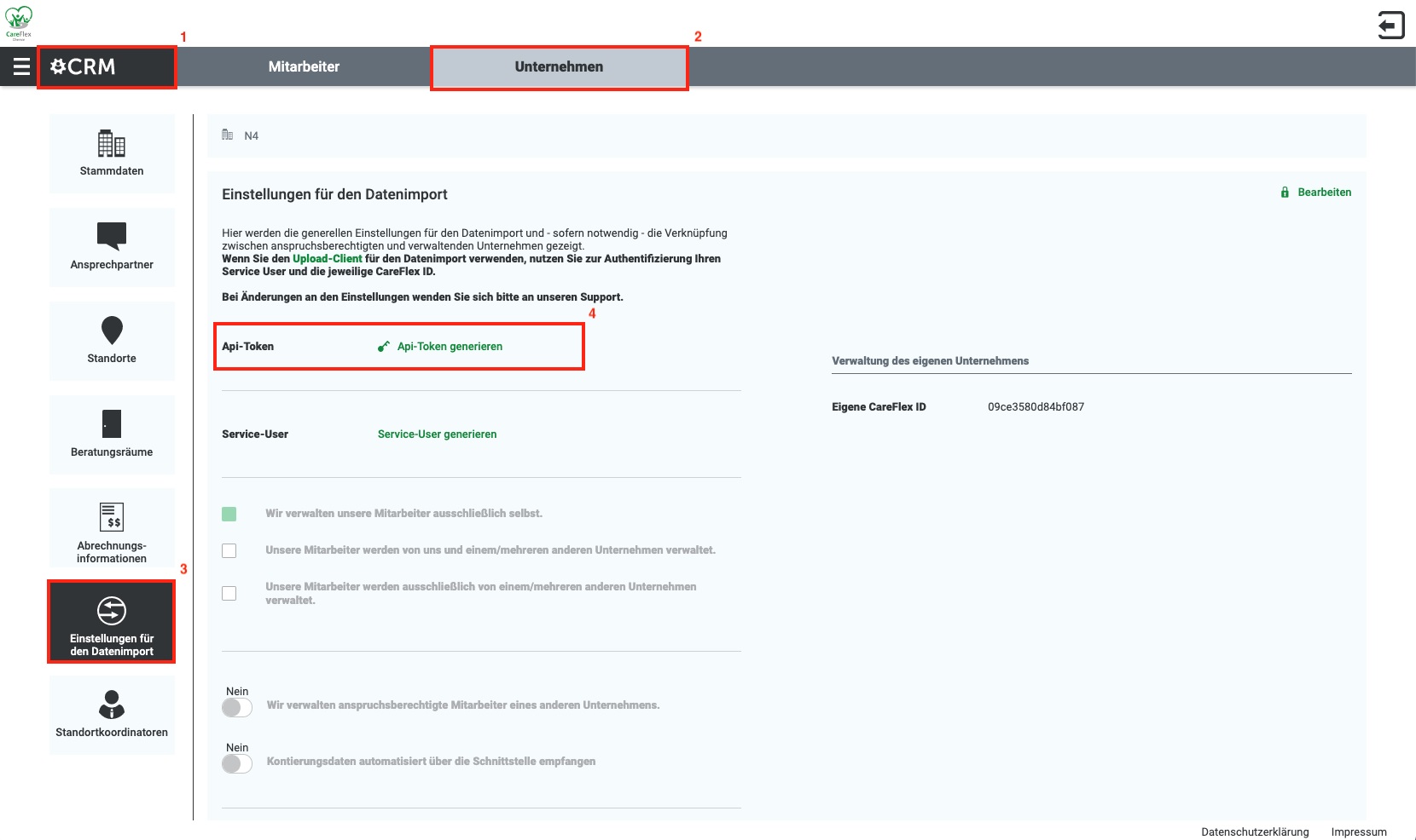 Achte bei verknüpften Unternehmen unbedingt darauf, dass du die richtige CareFlex ID des zu meldenden Unternehmen eingibst, da die Daten andernfalls einer falschen Firma zugeordnet werden.
